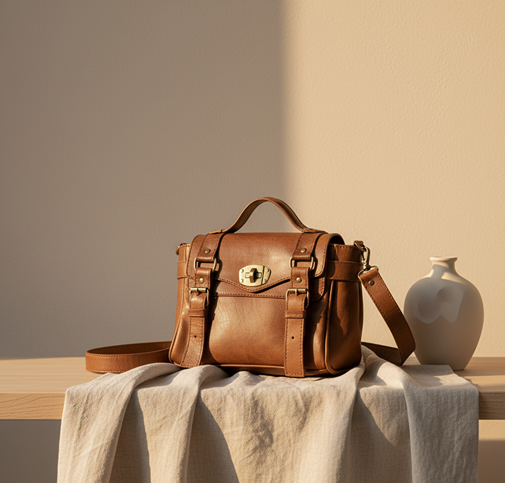 Light Brown Full-Grain Leather Satchel – Vintage Crossbody Messenger Bag