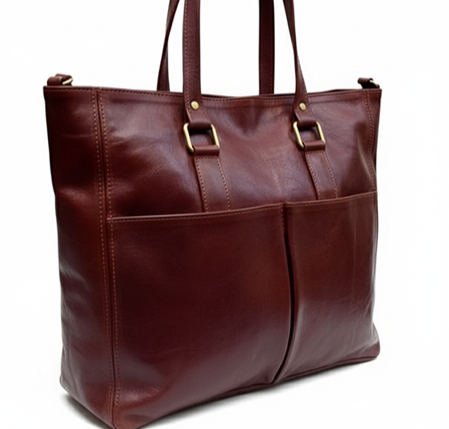 Premium Burgundy Full-Grain Leather Tote – Handcrafted Work & Travel Carryall