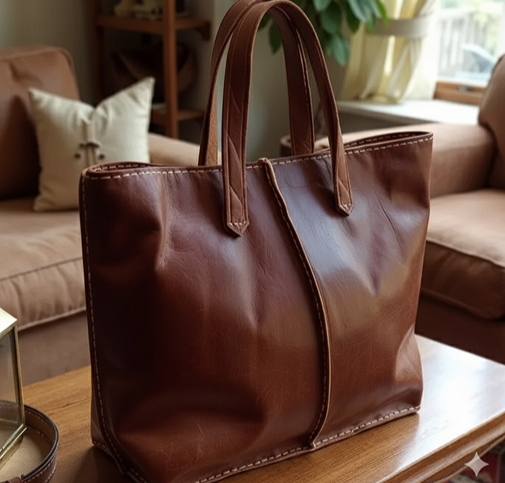 Premium Cognac Full-Grain Leather Tote – Handcrafted Everyday Work & Travel Bag