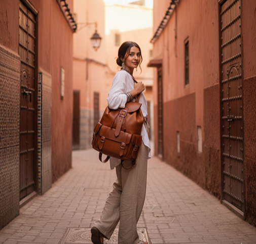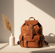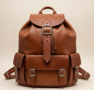 Premium full-grain leather backpack with vintage brass buckles, adjustable straps, and dedicated laptop compartment. Handcrafted design blends timeless style with practical functionality.