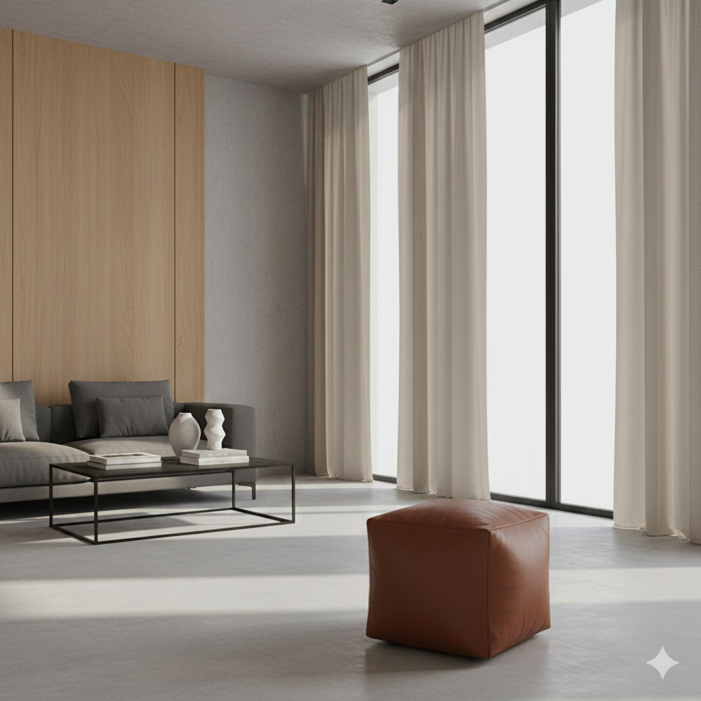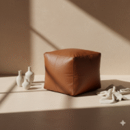 Each ottoman is handmade by Omar, a master leather artisan with over 20 years of expertise. The creation process takes 3–4 days, during which six precisely cut leather panels are assembled using reinforced double stitching. Clean seam lines, perfectly aligned corners, and smooth-edged finishing give the ottoman its refined, minimalist aesthetic.