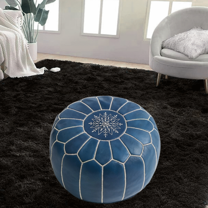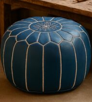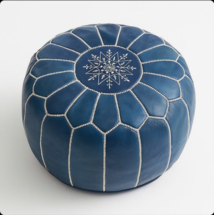Pouf Ottoman en cuir marocain bleu