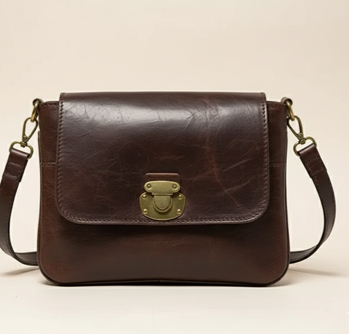Designed with long-lasting materials, the bag includes an oval antique brass turnlock closure that secures belongings while adding a refined vintage touch. The adjustable leather strap allows comfortable crossbody or shoulder carry, making it suitable for urban commutes, weekend outings, and minimalist travel.