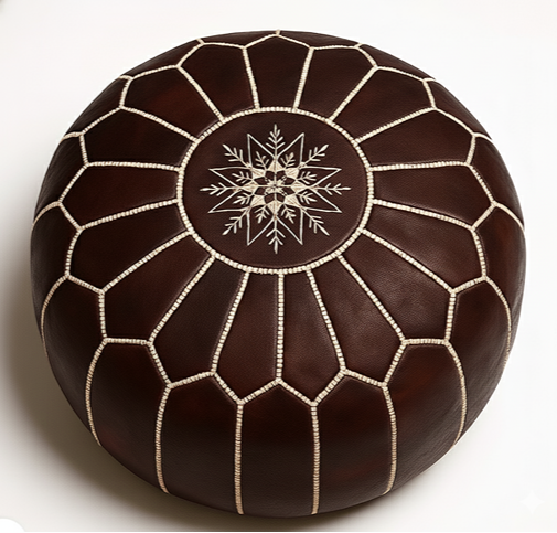 Each ottoman is meticulously handmade by Omar, a third-generation artisan from Marrakech’s historic medina. The process involves: