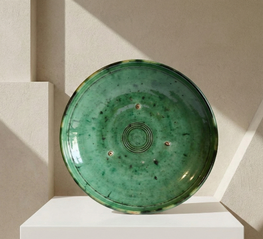 Crafted in the historic pottery village of Tamegroute, this set of 3 emerald green ceramic plates brings centuries of artisan tradition to your home. At 7.9 inches (20 cm), these plates are the perfect size for desserts, appetizers, tapas, bread service, or even decorative wall displays. Each piece offers a striking blend of deep emerald, sage green, and amber tones created by Tamegroute’s legendary reactive glaze.