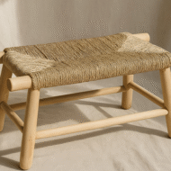 A handcrafted Moroccan straw bench made from natural palm leaves and sustainable lemon wood. Eco-friendly, lightweight, and perfect for indoor or outdoor seating.