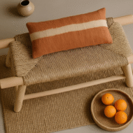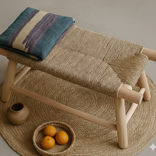 Handwoven Moroccan Straw Bench – Eco-Friendly Palm Leaf & Lemon Wood Seating