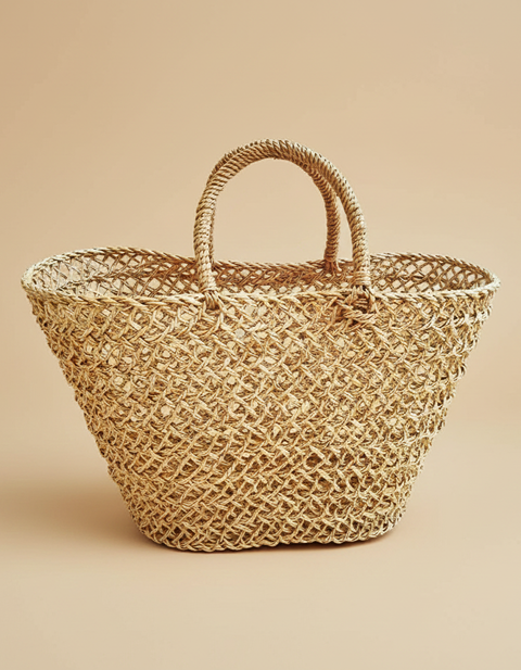 Handwoven Natural Straw Mesh Tote – 14″ Eco-Friendly Beach & Market Bag