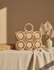 Ajoutez une touche d’élégance naturelle à vos sorties avec ce sac en raphia entièrement tissé à la main. Son design signature à médaillons floraux sculptés et ses anses circulaires créent un look bohème chic, parfait pour la plage, le marché ou les sorties quotidiennes. Léger, durable et 100 % artisanal — une pièce qui incarne l’authenticité marocaine.