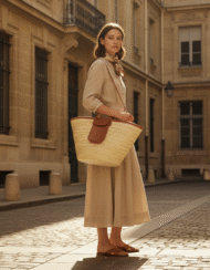 Natural Elegance: Cream straw with warm cognac leather complements any outfit