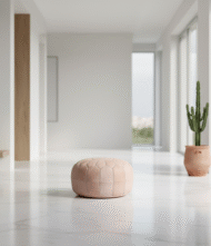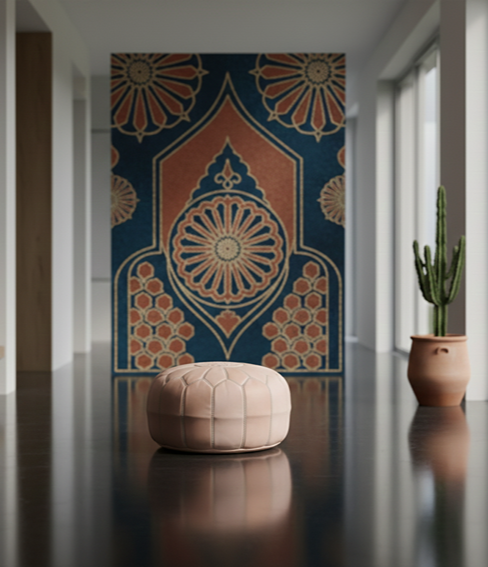 Handcrafted in Marrakech from premium undyed leather, this 21″ round floor ottoman brings natural warmth, minimalist style, and everyday versatility to your space. Each pouf is stitched by hand using traditional Moroccan techniques, featuring an eight-pointed star embroidery and soft, organic tan tones. Lightweight, durable, and naturally eco-friendly — perfect as seating, a footrest, or a meditation cushion.