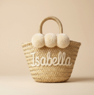 Personalized Mini Moroccan Straw Bag Set – Custom Name Beach Bags with Pom Poms