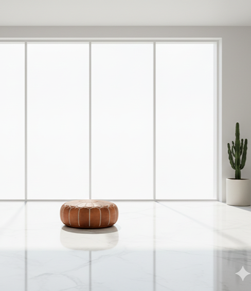 Every pouf is expertly stitched by Omar, a Moroccan leather artisan with over two decades of experience.
