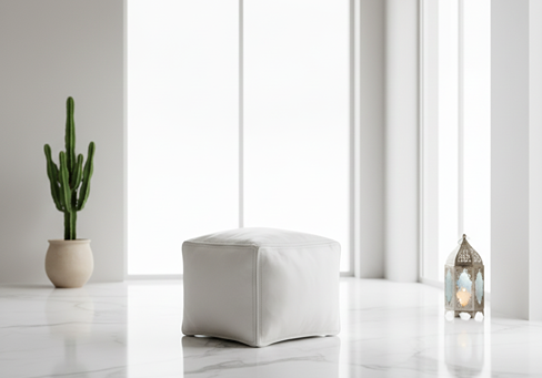 Each ottoman is carefully handcrafted in Marrakech, Morocco, by master leather artisan Omar. Made from 100% premium full-grain leather, it features natural color variations and subtle burnished tones from deep chocolate to taupe. The cream contrast stitching along every edge is hand-sewn in double rows, forming crisp, clean lines that highlight the pouf’s cubic design. With reinforced six-panel construction, this ottoman is durable, supportive, and retains its shape over time.