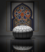 Be the first to review “White Moroccan Leather Round Ottoman – 21″ Handcrafted Pouf with Black Geometric Star Embroidery”