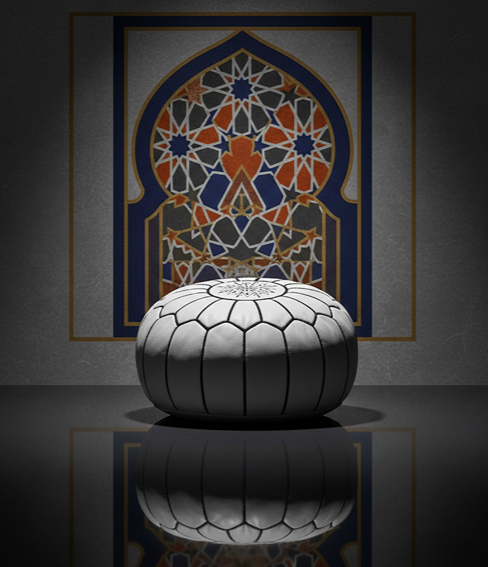 Each ottoman is handcrafted by Omar, a master artisan who has perfected his leatherwork through techniques passed down for generations. Over the course of 3–4 days, he carefully cuts 12–16 curved leather panels, hand-embroiders the central medallion, and joins every seam using saddle-stitch methods that ensure durability and long-lasting structure.